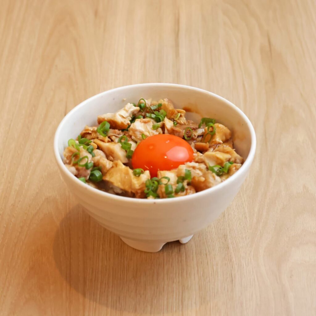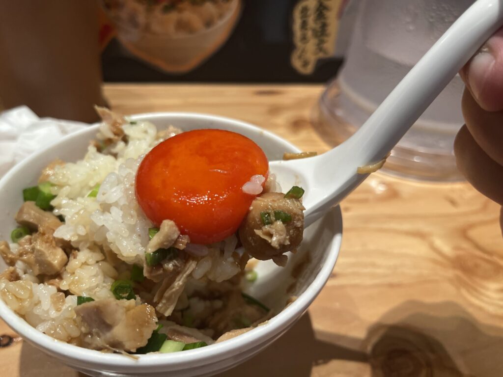 焼豚はラーメンに入れる焼豚の併用ではなく「鶏めし専用の焼き豚」として調理されているとのこと。この鶏めしはそのまま食べるのはもちろん、ラーメンスープをかけて、残ったスープに鶏めしを入れても楽しめる。