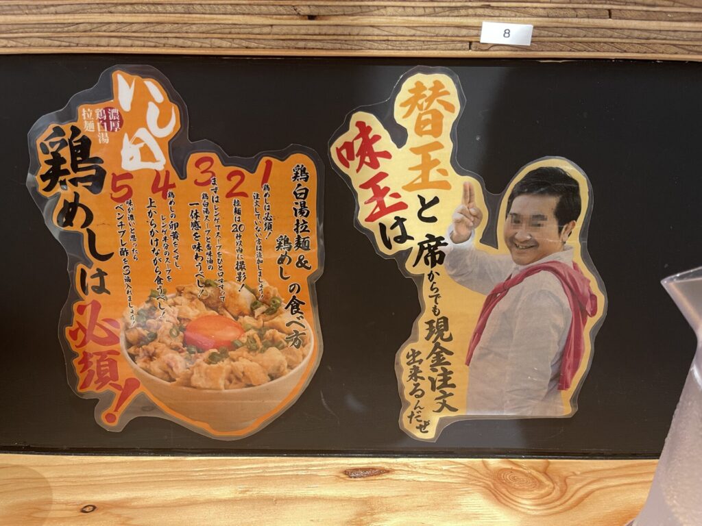 いし田のイチオシの商品が「鶏めし 500円(税込)」。この商品を紹介する看板やポップがラーメンよりも多いため、こちらが主力商品ではないかと思わせるほどの推しメニュー。