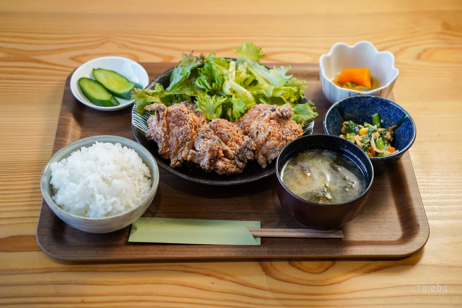料理を運ぶおぼんも、廃材を使用しています。定食メニューの茶碗も、不揃いで商品にできなかったものです。トトンKITCHENでの女子会は、身の回りのもので新しい価値を見出せるものはないか、考えてみるきっかけになるかも。そうすると、普段の生活がちょっと楽しくなりそうです。