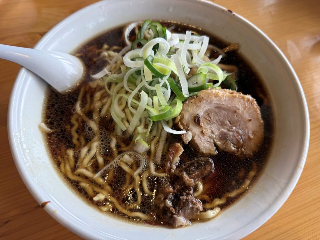 麺家いろはの定番は「黒醤油ラーメン」。黒いスープを見るとしょっぱくてこってりとした味わいを想像する方もいるかもしれませんが、麺家いろはの黒醤油ラーメンはあっさりとした味に、深いコクを感じられる一杯となっています。