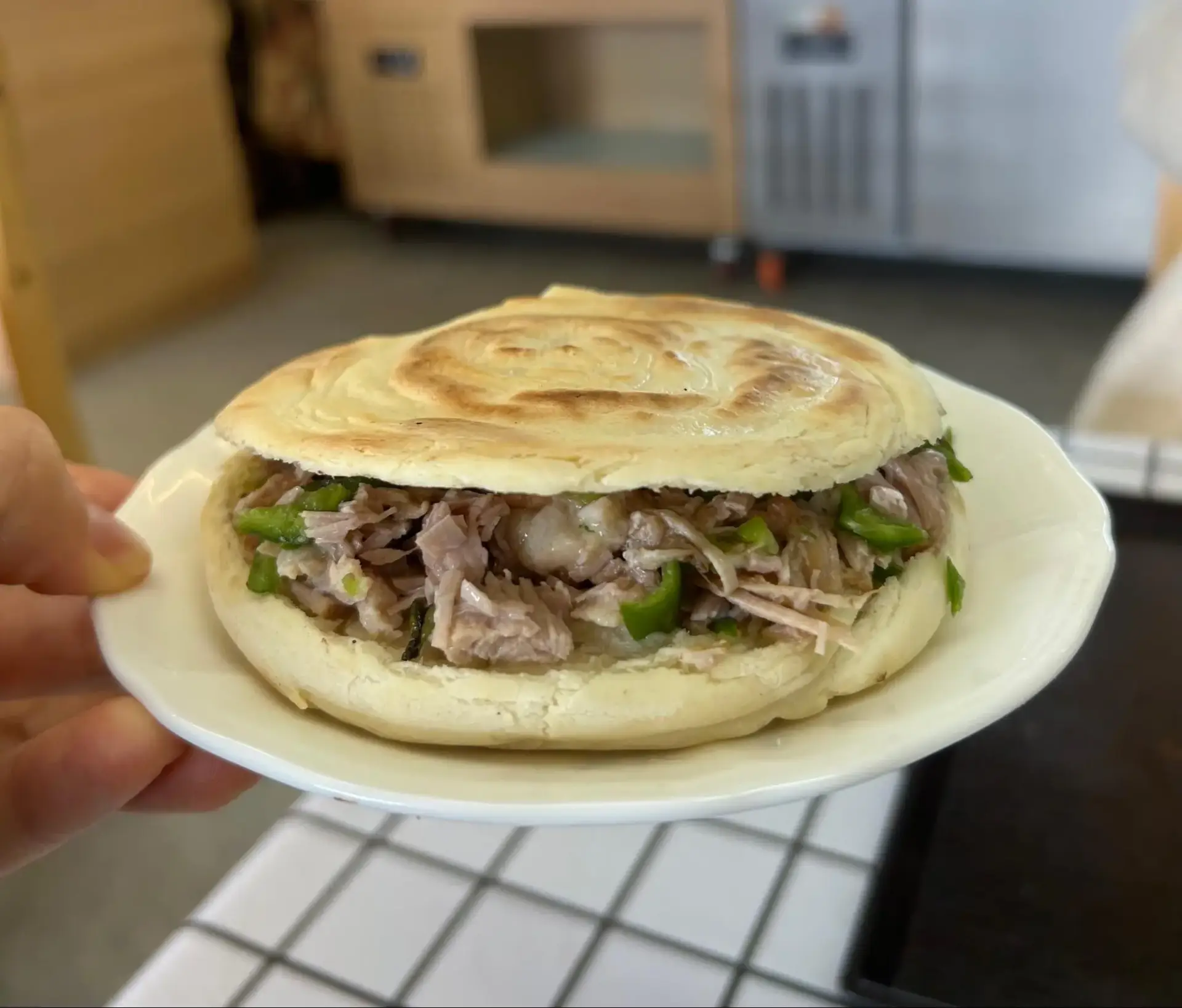 楊記食堂おすすめの肉夾モーは、煮込んだお肉を蒸したパンで挟んだ、西安を代表するファストフードです。甘さを感じるパンに、シナモンが効いた塩気のあるお肉が絶妙に合い、日本ではあまり味わうことのできない本場の味を楽しめます。