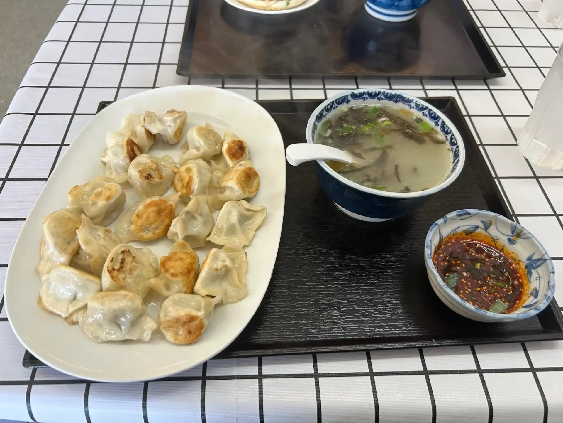 ランチタイムのメニューは「餃子ライス」のみですが、ディナータイムにはヤキソバやタンメン、酢豚などのメニューも頼めます。