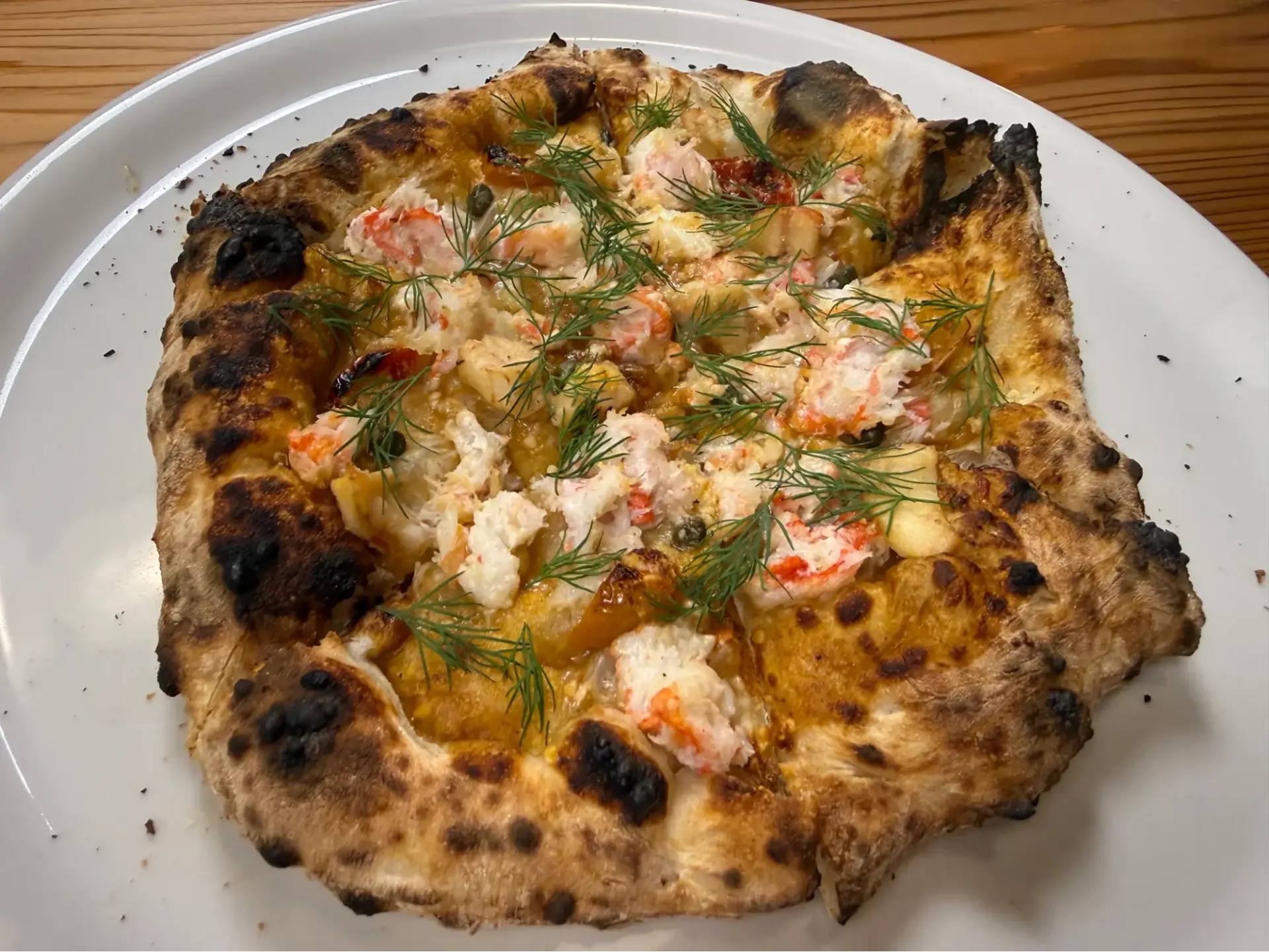 ピザを焼く窯では、火持ちと香りが良く火力が強いナラの薪だけを使い、絶妙な火加減でバランスを調整して焼いています。厳選された食材、オリーブオイルの量など、細かいところまで手を抜かずにこだわるピットーレの焼きたてピザは、まさに唯一無二の味。しっかりと歯応えがありつつパリッと軽さも感じられる生地は、食材との相性もばっちりです。ピザと同じ薪を使って直火焼きにするグリル料理も、ピットーレ自慢の一品となっています。