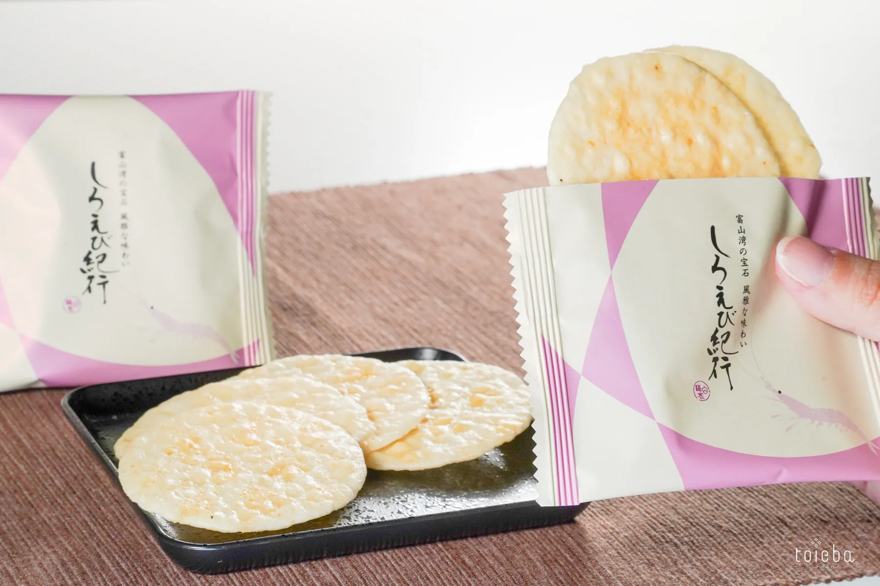 白えびせんべいは、富山県の代表的な特産品である白えびを使用した人気の伝統的なお菓子です。
