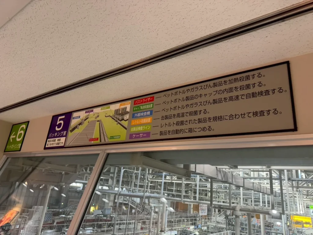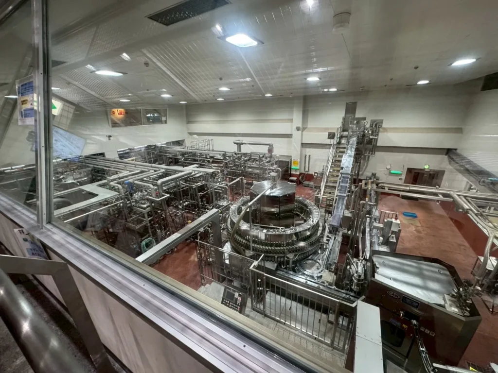 工場の製造ラインは工程ごとに、キャニング室、ペットボトリング室、パッキング室などの8つの部屋に分かれています。
