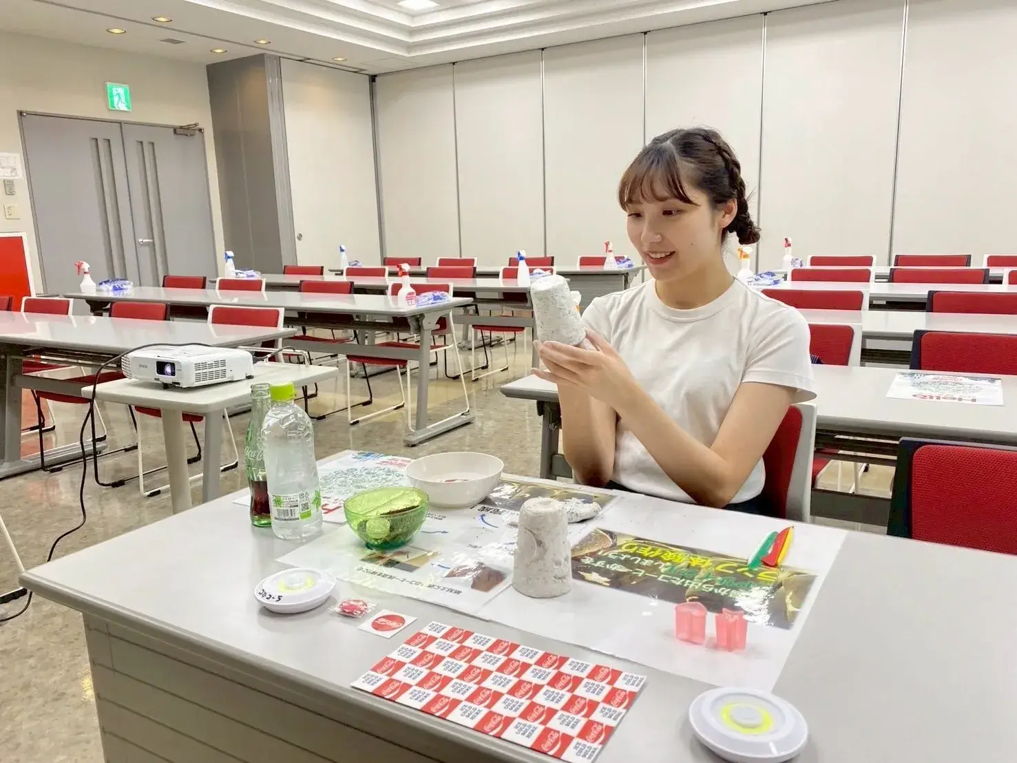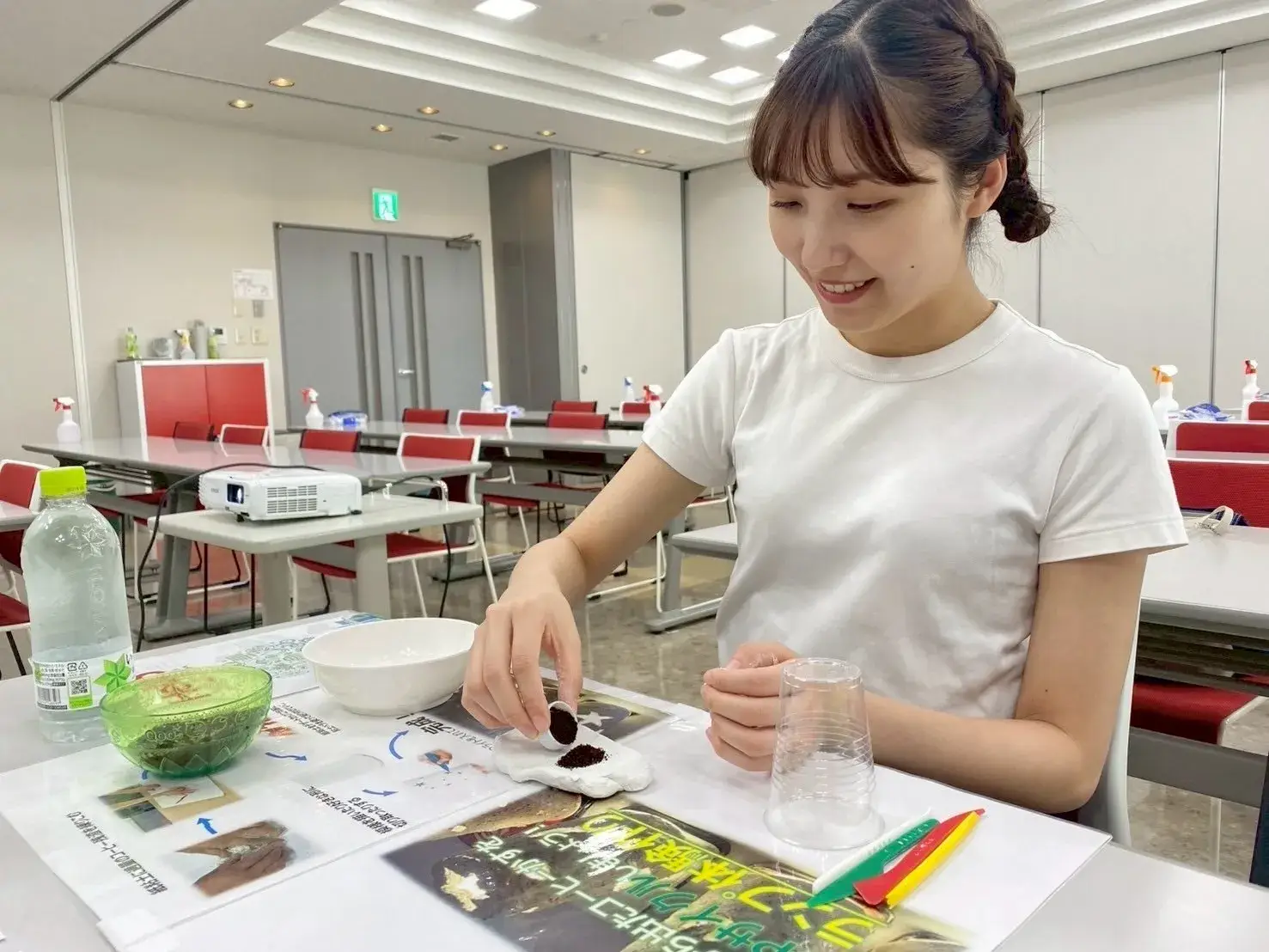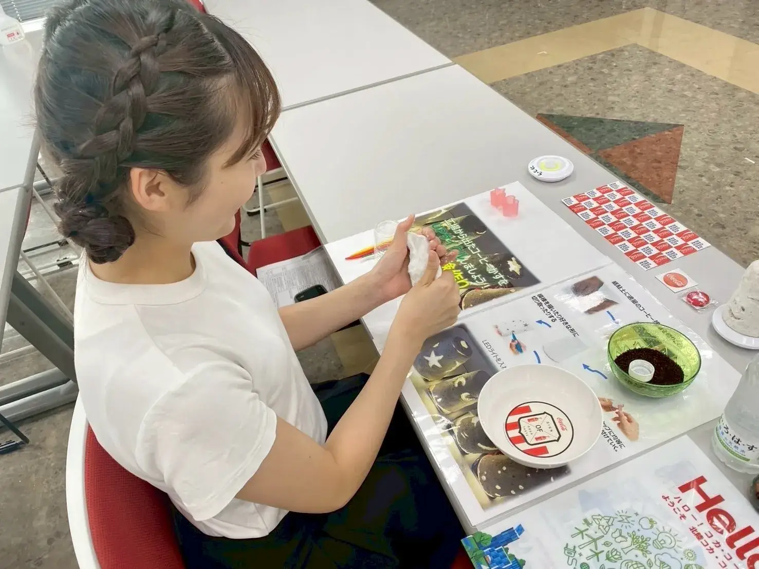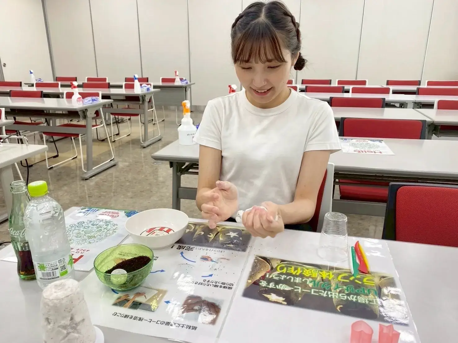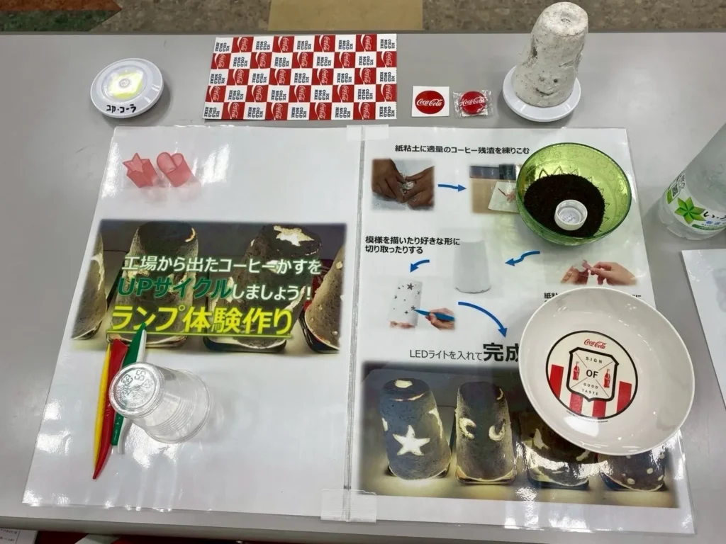 北陸コカ・コーラ砺波工場では、捨てられるはずだったコーヒーの粉を使って、ランプ作りを体験することができます。