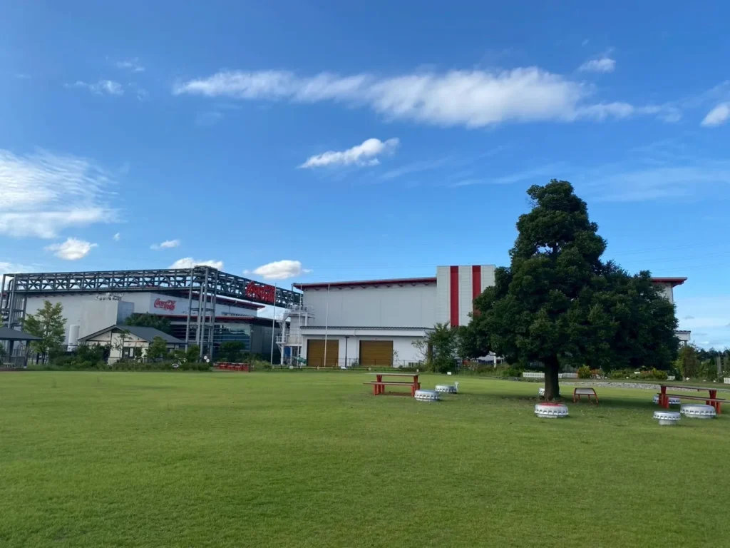 公園内には日付の入った看板が設置されており、工場見学に来た記念撮影ができますよ!工場見学に来たなら、必ず撮りたいおすすめスポットです♪