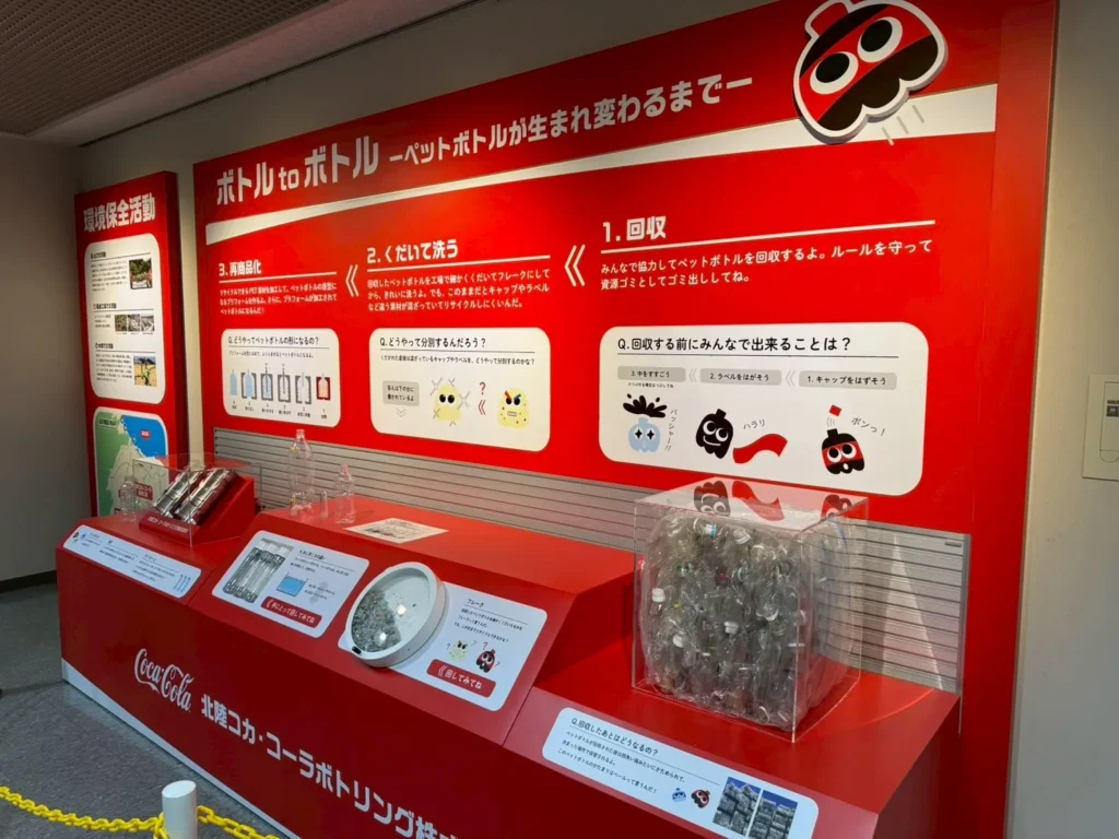北陸コカ・コーラ砺波工場では飲料はもちろん、飲料を入れるペットボトルの製造も行われており、ペットボトルのリサイクルの仕組みについて学ぶことができます。