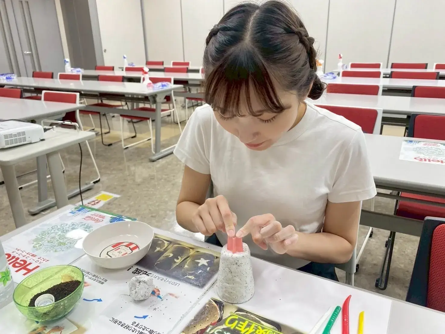 真っ白な紙粘土にコーヒーの粉が混ざってなんだか模様のようで可愛いです!コーヒーかすが少ない場合はスタッフさんが教えてくれるので安心ですよ♪