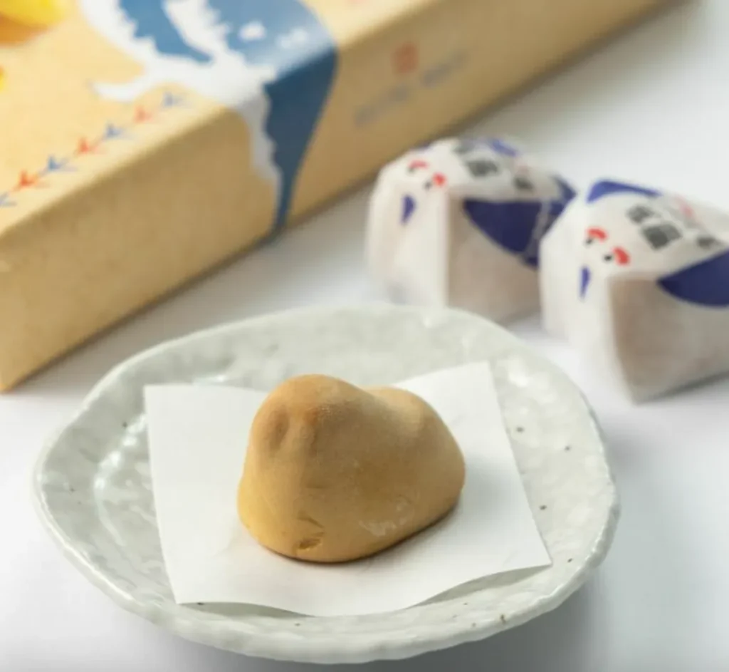 ふんわりとした皮の中に、カスタードクリームと黄身あんが入っています。ほんのり甘く、優しい味わいで子どもから大人まで好まれる焼き菓子です。