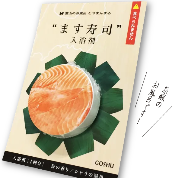 富山名物のます寿司をリアルに再現した、かわいさとユニークさが融合した入浴剤です。