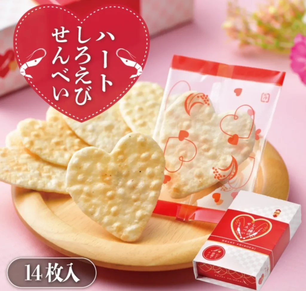 富山の定番土産であるささら屋の白えびせんべいを、可愛らしいハート型に仕上げた「ハートしろえびせんべい」。白えびの上品な風味と富山米100%のパリッとした食感はそのままに、見た目に遊び心を加えています。