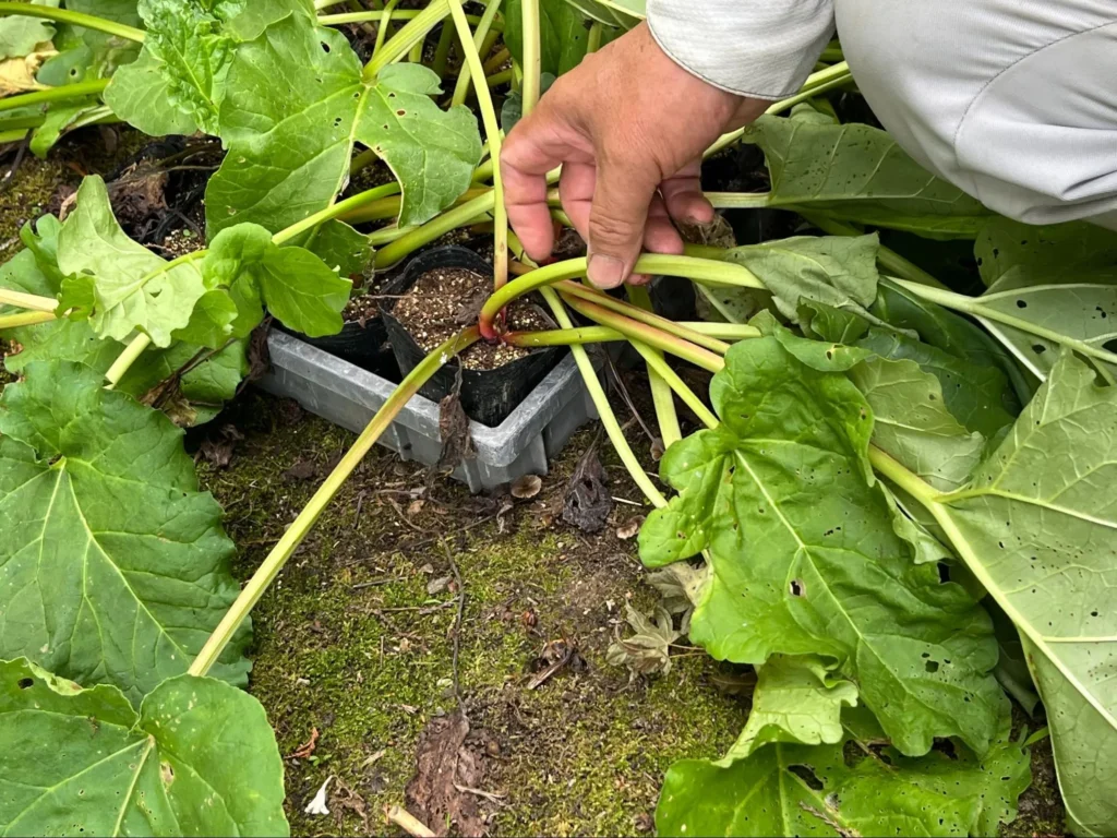 シェフやパティシエからも相談を受けるという晃さん。ジャムやお菓子に使う新鮮な「ルバーブ」を手に入れたいという要望に応えようと、何年もかけて試験栽培しています。