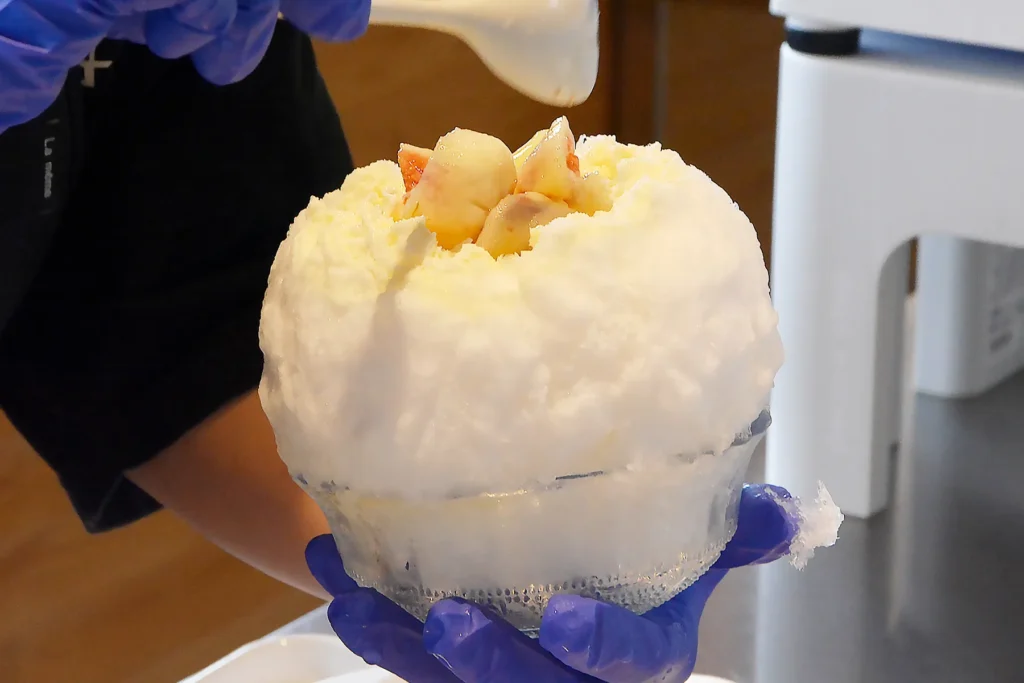 天然氷は天使の羽のようにふわふわ軽く、薄く削られます。
