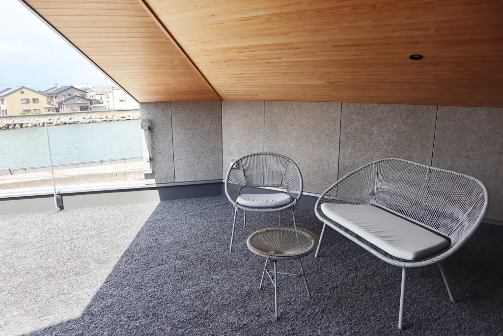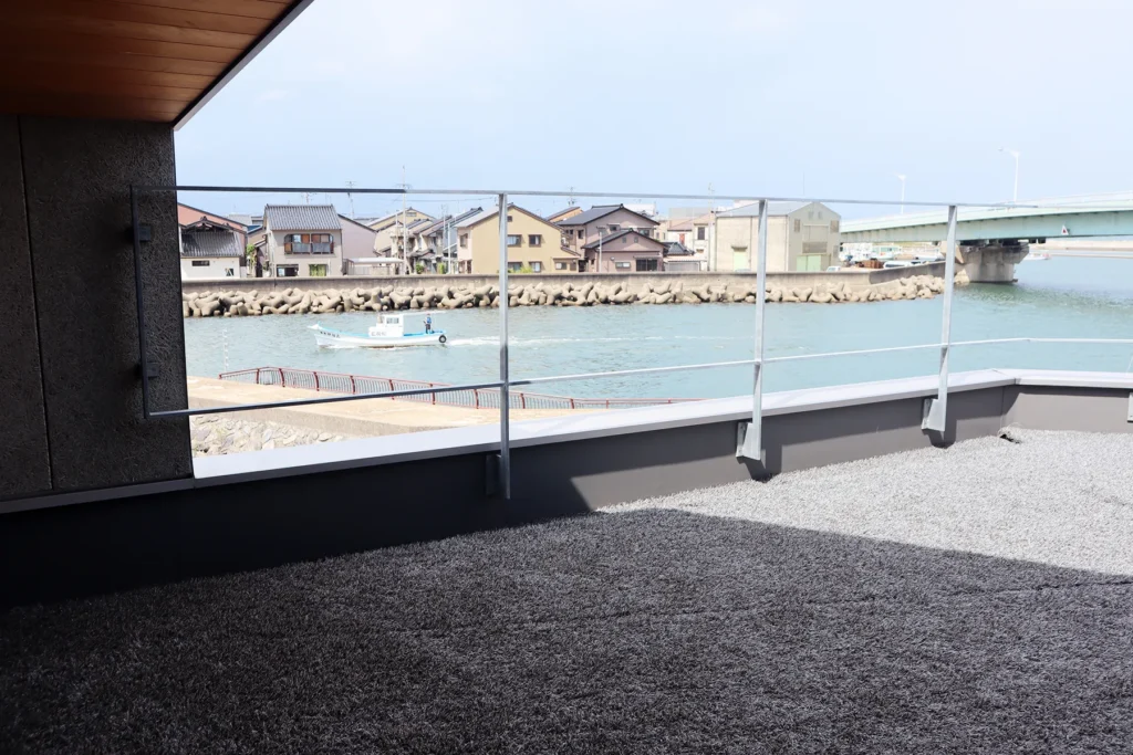 また、1階の海側にも屋外カウンター席があり、ワンちゃんを連れたお客さんも、内川河口の景色を楽しめるようになっています。