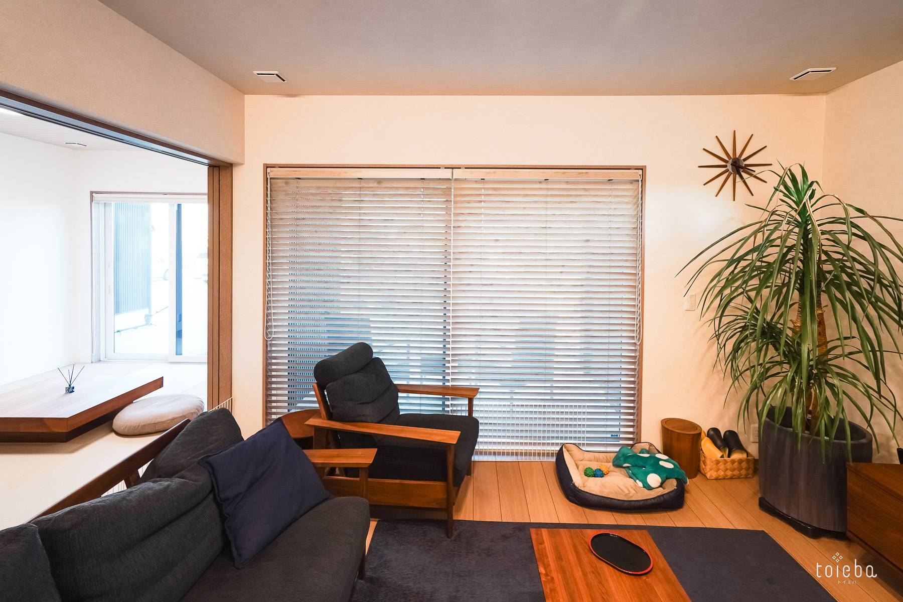 リビングの隣には和室を設けました。しっかりと扉で仕切りつつも、リビング側の扉を開けるとリビングがより開放的な空間に。