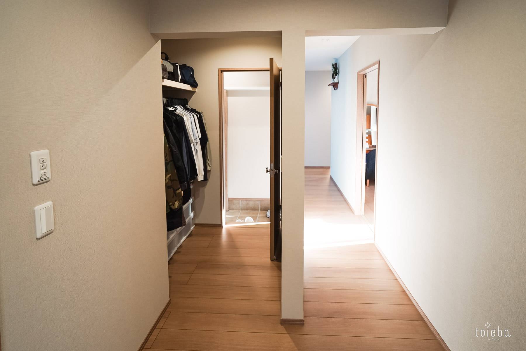 廊下やキッチンなど生活動線に合わせて収納をたっぷり用意し、生活感を見せずにすっきり過ごせます。