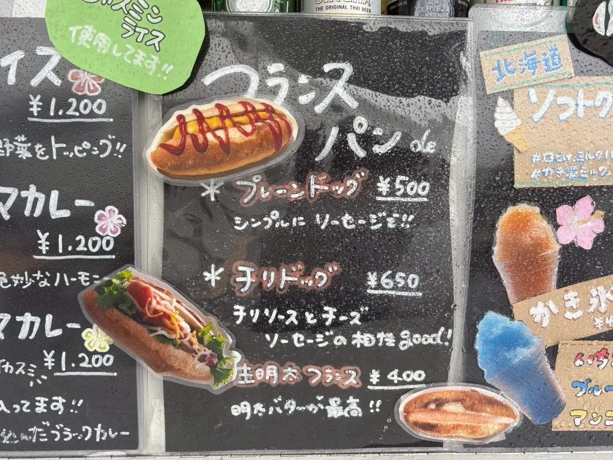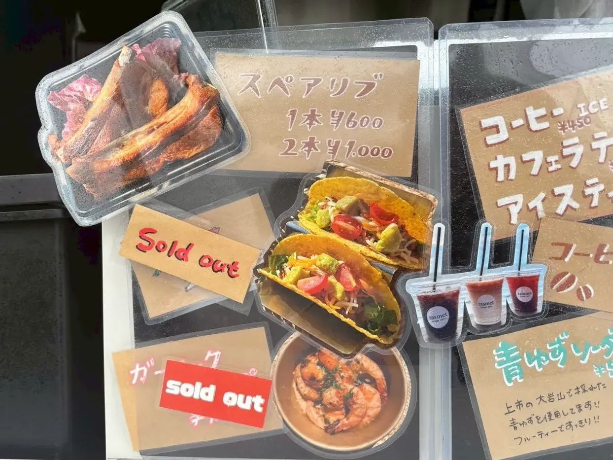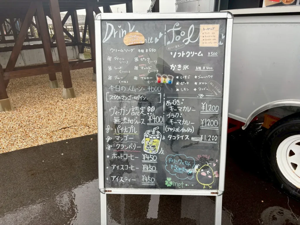 キッチンカーではスムージーやキーマカレー、ホットサンドなどの軽食が販売されています。どれも海を眺めながら食べるのにピッタリなメニューばかりです!