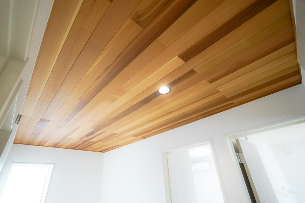 プランに組み込まれた独自のカスタマイズシステム「プレミアムセレクション」により、通常ならオプション扱いとなる仕様を、150万円の範囲内で自由に選択することができるのです。住む人の好みやライフスタイルに合わせて、インテリアや設備をカスタマイズでき、この天井もその一例です。予算を気にせず理想の住まいづくりができる、マイレアホームならではのサービスですね。