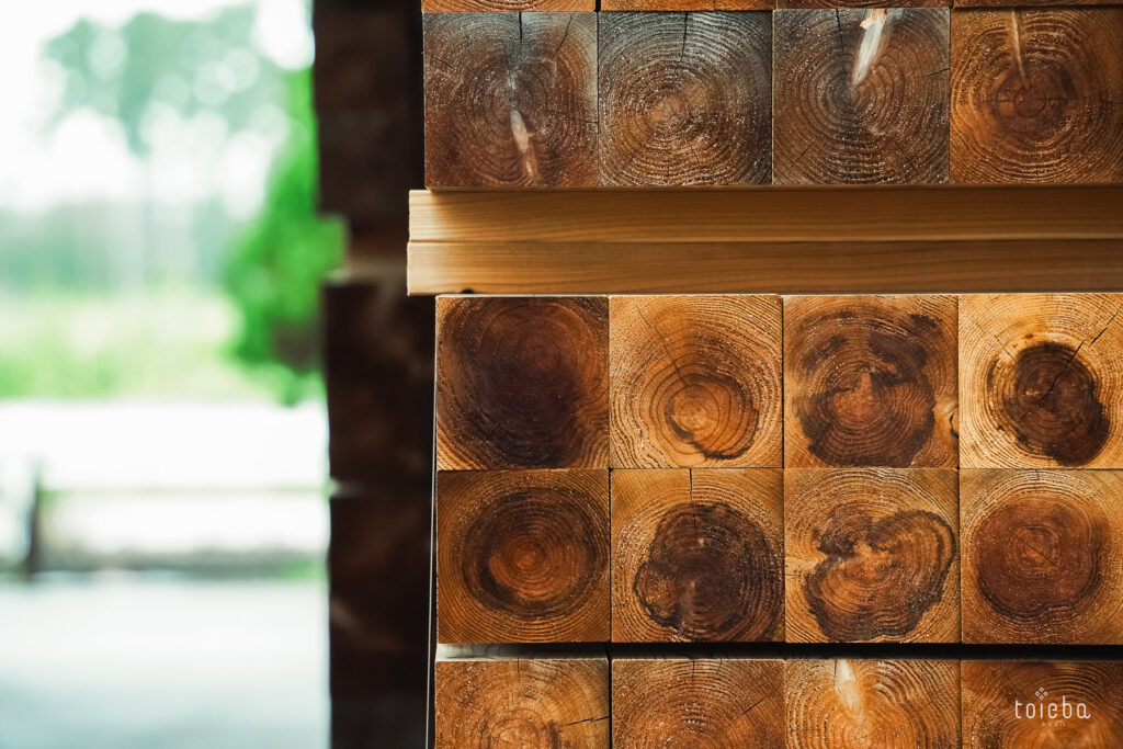 さらに木材同士が密着して蒸れるのを防ぐため、枕を噛ませているのだそう。徹底した管理体制が伺えます。