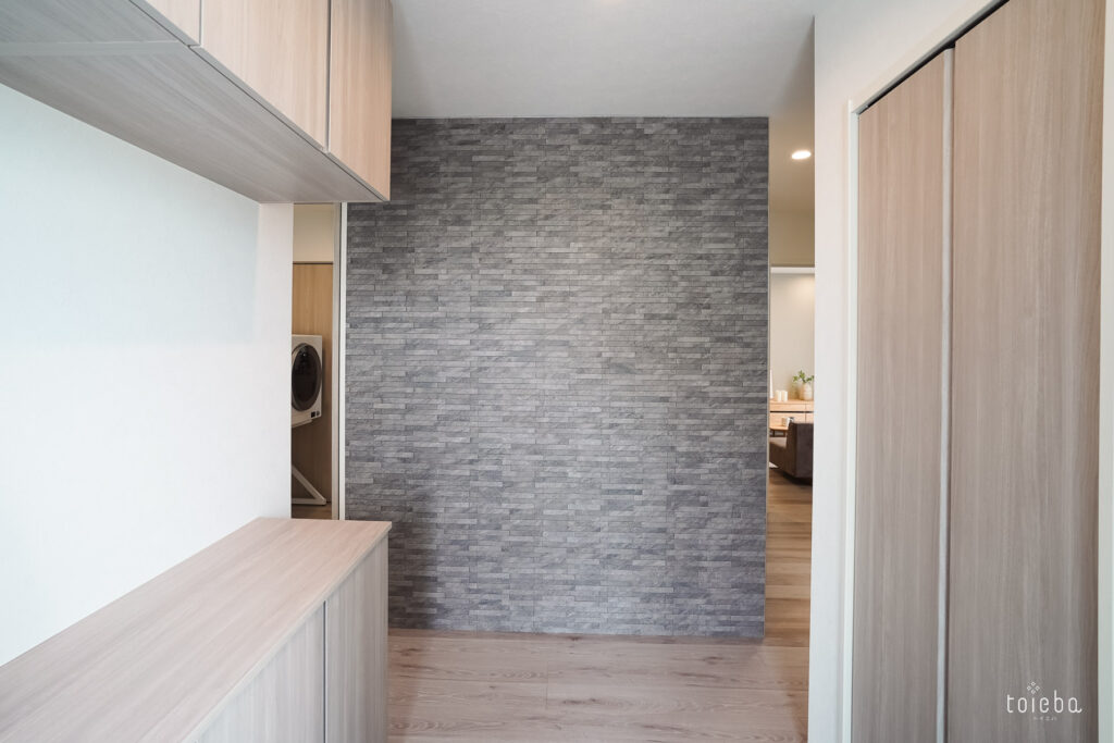 玄関を入ると、両サイドにはたっぷりとした収納スペースが。正面に見えるアクセントウォールには、調湿、脱臭効果などをもつ特殊加工が施された「エコカラットプラス」を採用。洗練された上品な玄関フロアに、期待感が高まります。