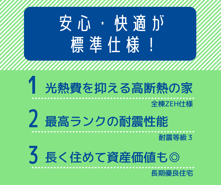 長く快適に住み続けられることを国が認めた「長期優良住宅」です。資産価値を維持しやすく、税制優遇などのメリットも受けることができます。