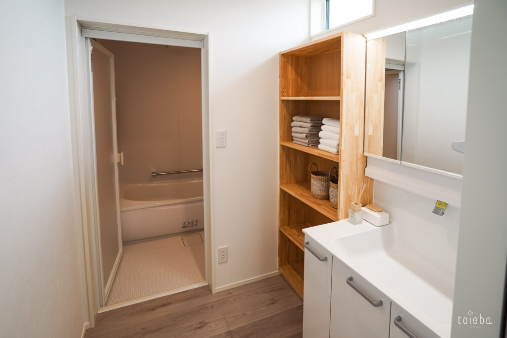 玄関から、LDK(リビング・ダイニング・キッチン)とランドリールームなどの水回り、2つのルートにアクセスでき、室内をぐるりとスムーズに移動できるのです。