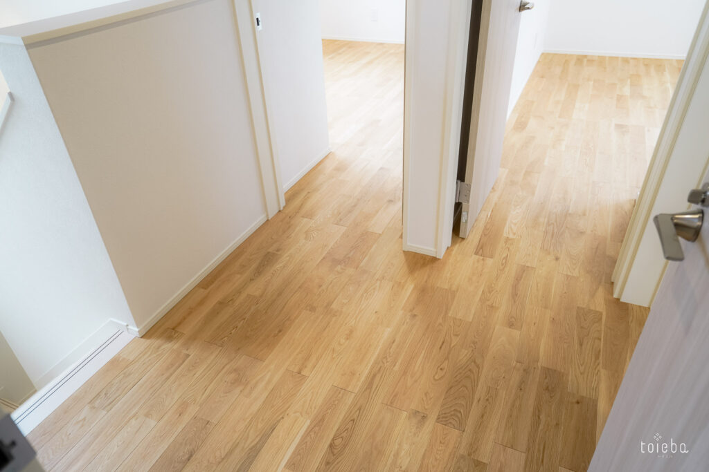 2階の床には無垢材を使用。天然木の温かみと香り、さらりとした肌触りが心地よい!