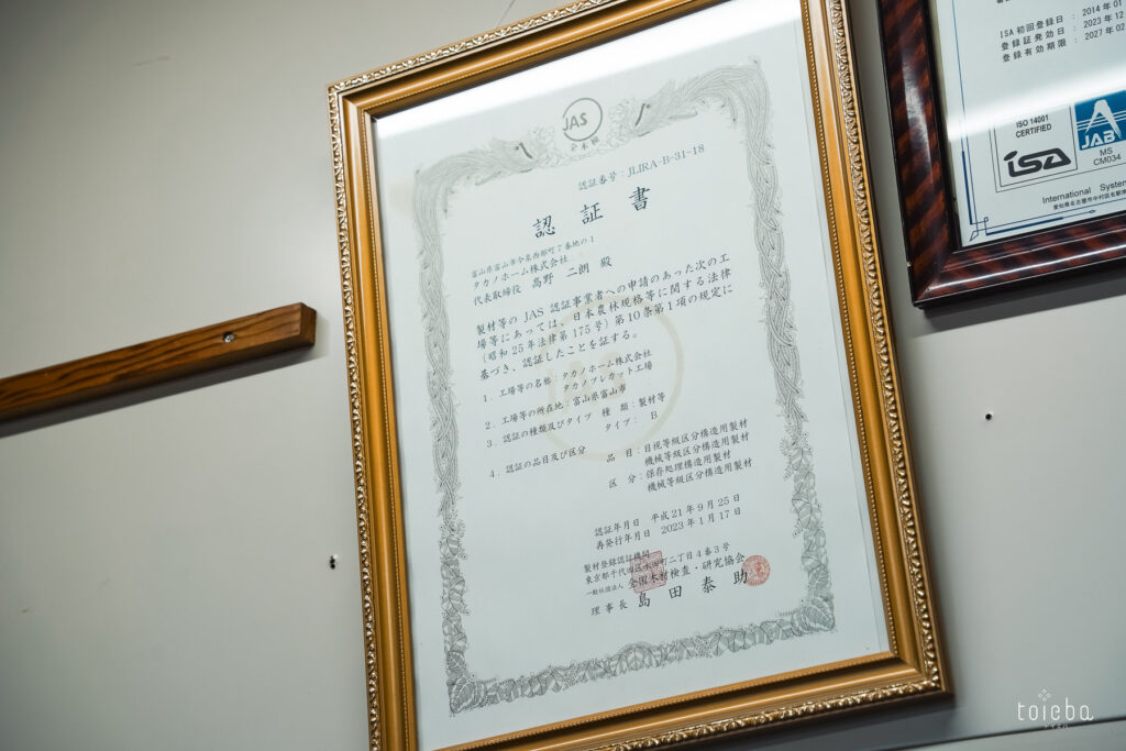 「加工は機械で行われますが、要所要所で人間の目で見ることが大事。お客様が住むことを考えながら妥協せずに取り組むことが大事だと考えています」と高橋さんは語ります。こうした木材の厳しい選定基準と徹底された品質管理、丁寧な加工技術が「マイレアホーム」の“安心”を支えているのですね。