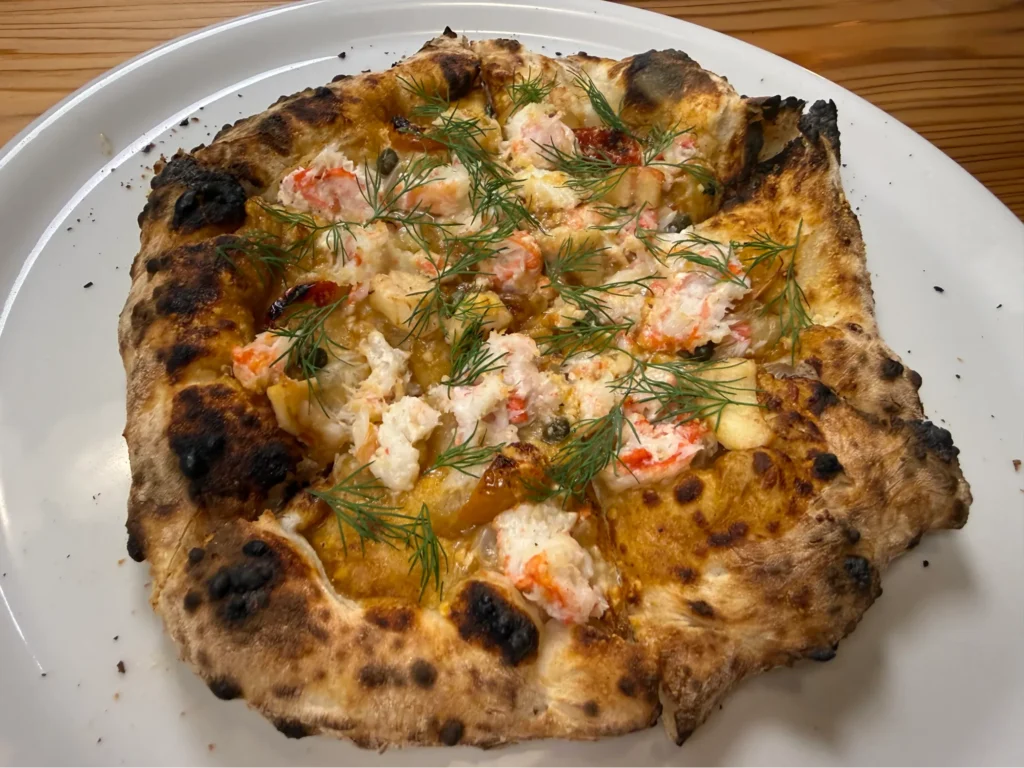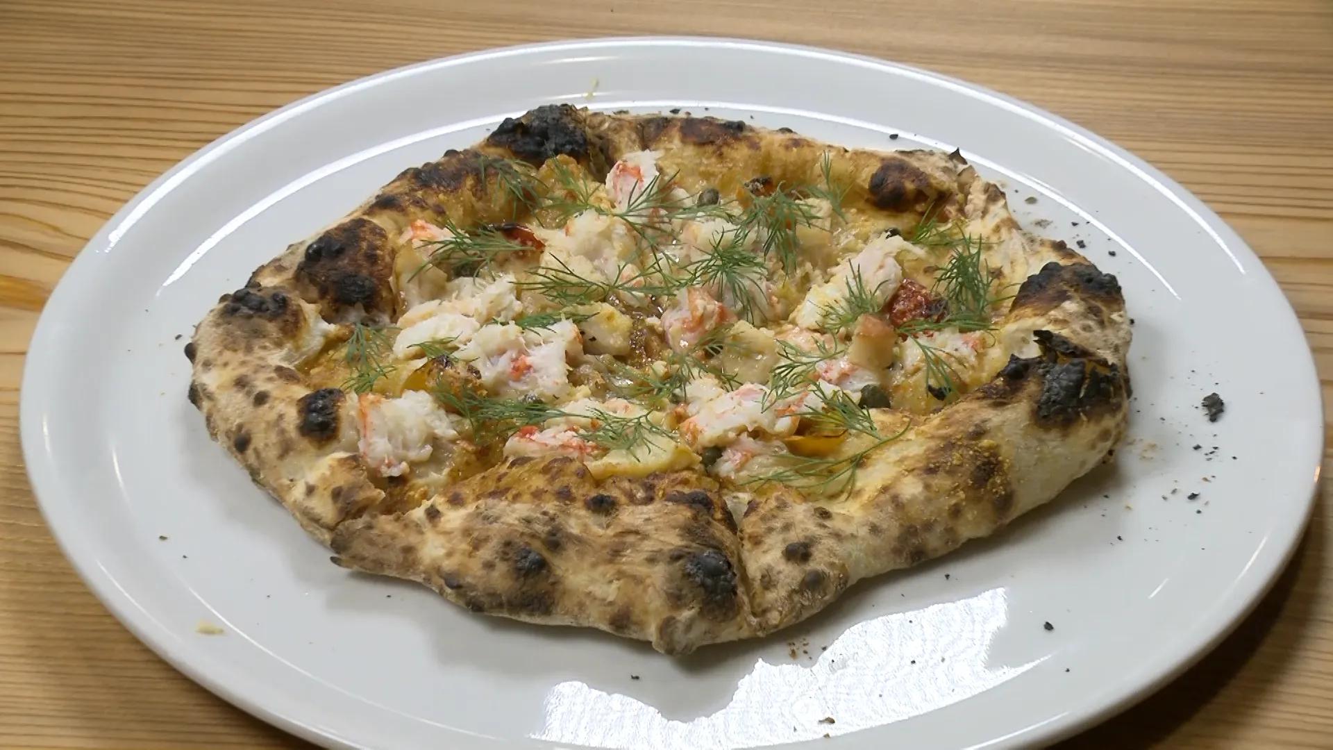 このソースにマダコ、ドライトマト、そしてズワイガニをたっぷりとトッピング。富山らしさを存分に味わえるピザに仕上がっています。