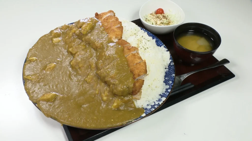 カツは揚げたてで衣サクサク、カレーソースはしっかりめのルーがたっぷり。そしてその下には大盛りのご飯が…という構成。大食漢は見た目だけで“チャレンジしたくなる”インパクトがある。