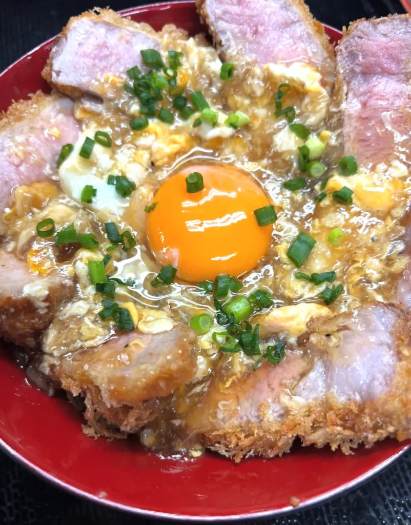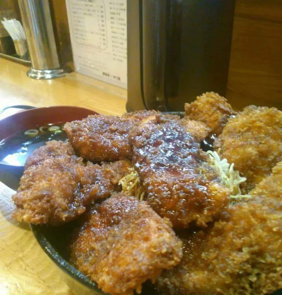 中でもおすすめなのが、サイズ展開が豊富な「チキンソースカツ丼」です。カツ4枚から15枚まで5つのサイズから選べるほか、要予約のチャレンジ盛り25枚も用意されています。見た瞬間に思わず笑ってしまうほどの迫力で、食べ応え抜群の一皿はここならではの味わいです。