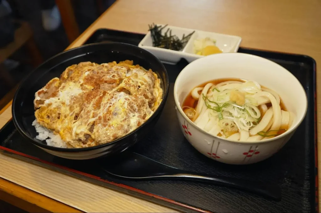 店名の通りうどんが看板メニューですが、ボリューム満点の「カツ丼」もおすすめです。富山県産の豚ロースを使用したカツは、注文を受けてから一枚ずつ丁寧に揚げるスタイル。仕上げに特製の出汁を含ませた玉子でふんわりととじることで、旨みと香ばしさが絶妙に溶け合います。一口食べれば、肉のうま味と甘辛いタレの風味が広がり、箸が止まらなくなるおいしさです。
