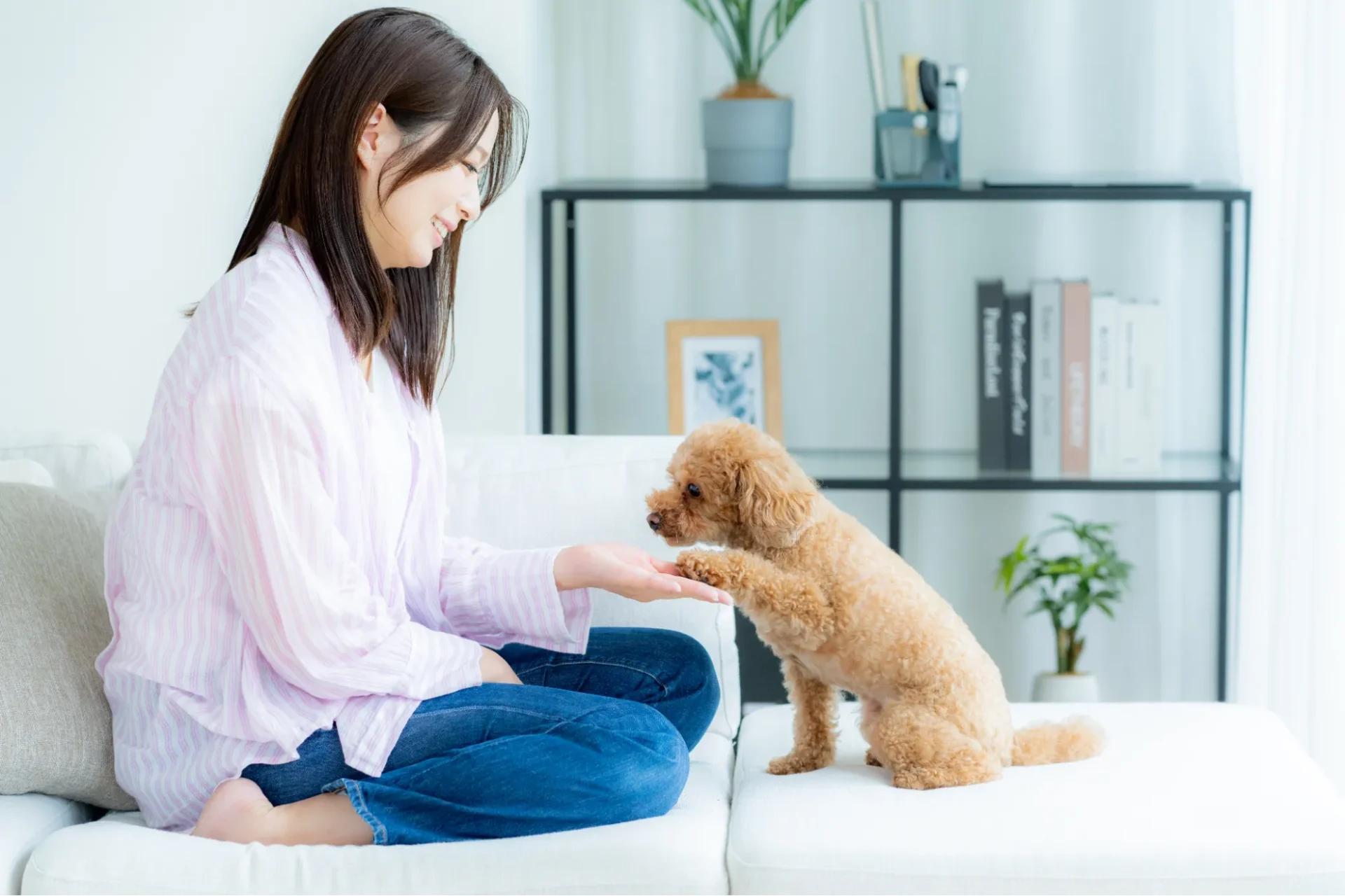 芸ができたらおやつをあげて褒めてあげることで、達成感と信頼感が生まれます。慣れてきたら「くるん」「ハイタッチ」など、少し難しい技に挑戦するのもおすすめです。