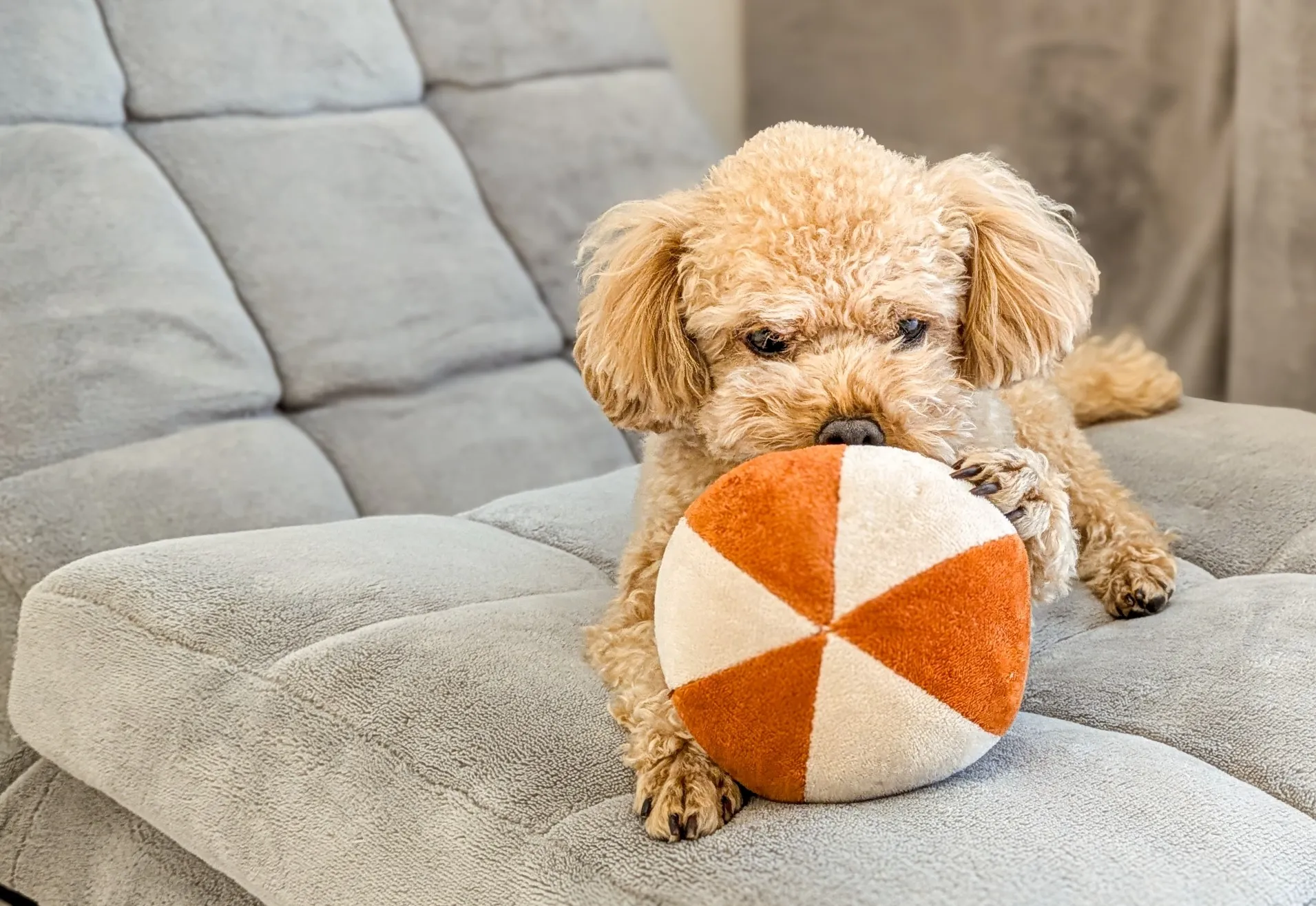 ボールやぬいぐるみを投げて持ってこさせる「もってこいゲーム」は、室内でもできる定番の遊びです。遊ぶ前に「おいで」や「ちょうだい」といった基本指示を練習しておくとスムーズに遊べます。