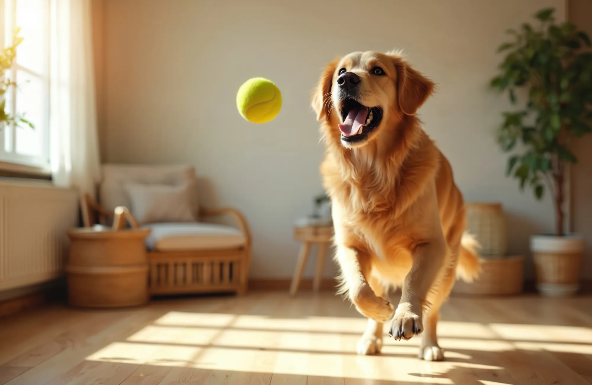 室内遊びに夢中になると、犬は周囲の状況を気にせず走り回ることがあります。