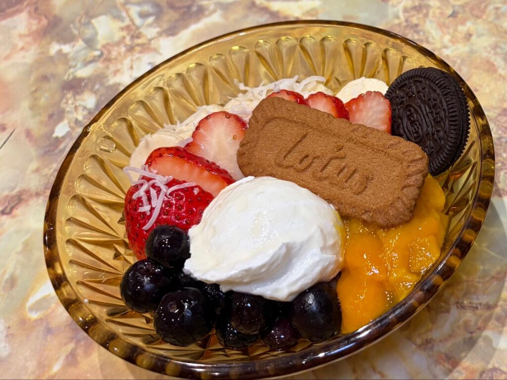 今回グリークヨーグルトにはバナナ、イチゴ、ブルーベリー、マンゴー、オレオをトッピングしました。