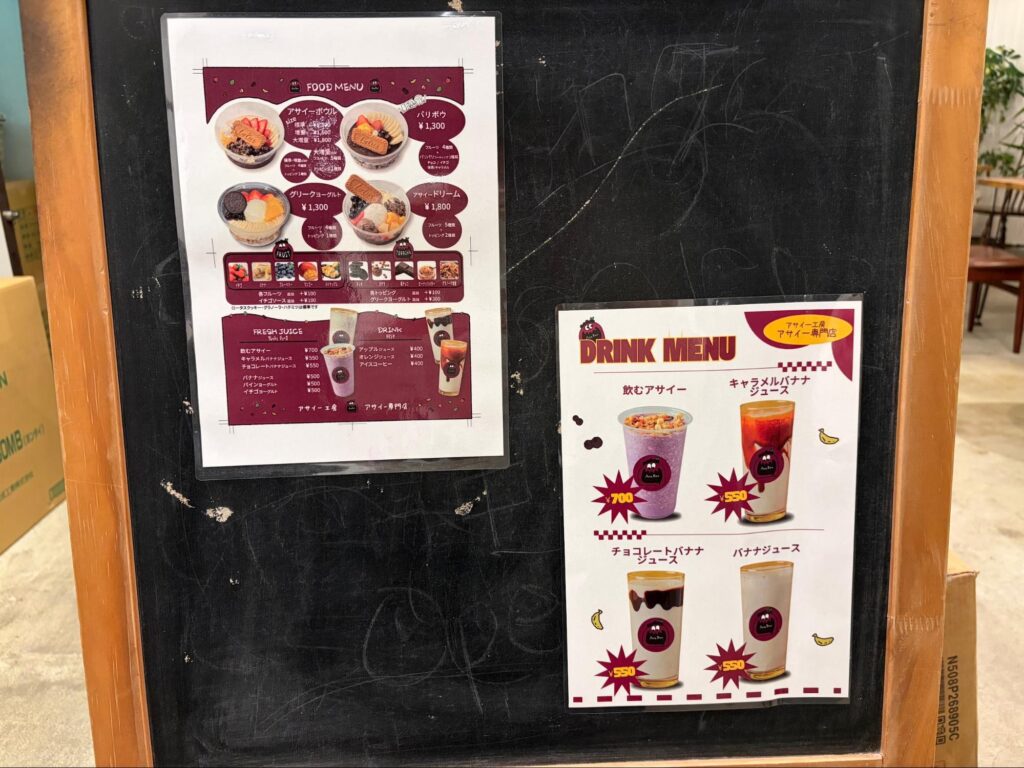 アサイー工房ではアサイーボウルやグリークヨーグルトだけではなく、飲むアサイーやバナナジュースなどドリンクメニューも販売しています。