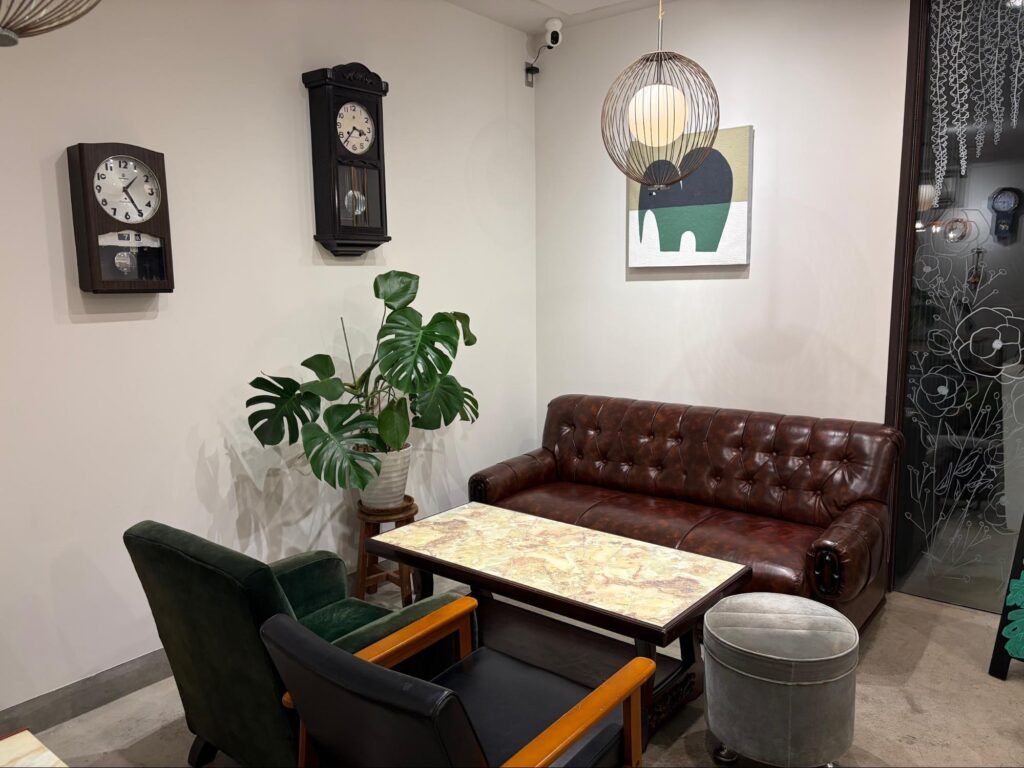 ほっと一息つきたいとき、アンティークな椅子や古時計に癒されながらアサイーボウルを食べてゆったりとした時間を過ごすことができます。