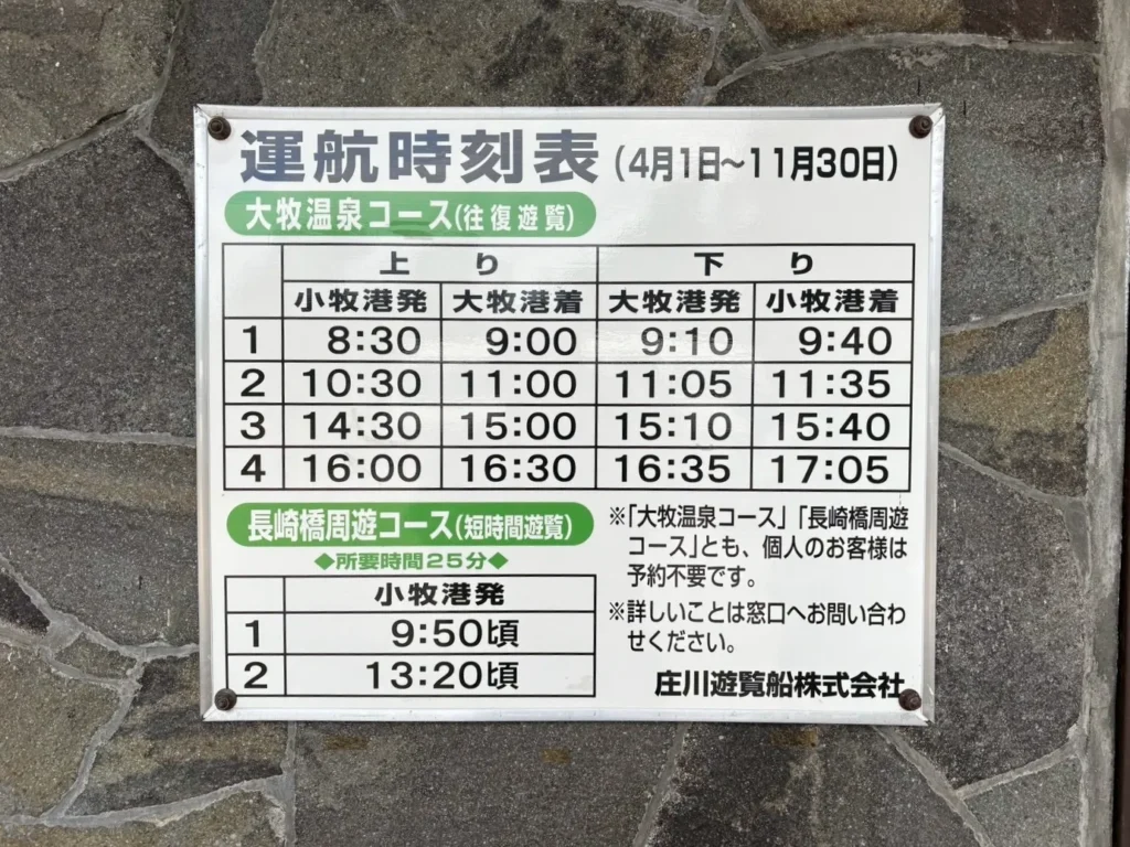大牧温泉コースの乗船料金は一般3,400円(往復)です。片道のみの乗船はできないため、お気をつけください!