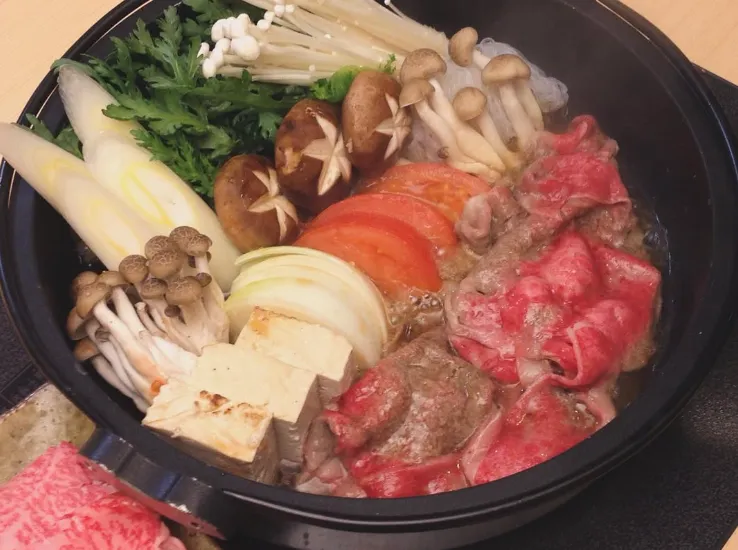 すき焼きは、セットメニューが4〜10名で注文可能(2日前までに予約必須)、単品は2人前から注文できます。すき焼きはテイクアウトもあるため、自宅でゆっくりすき焼きを囲みたい日にもおすすめです。