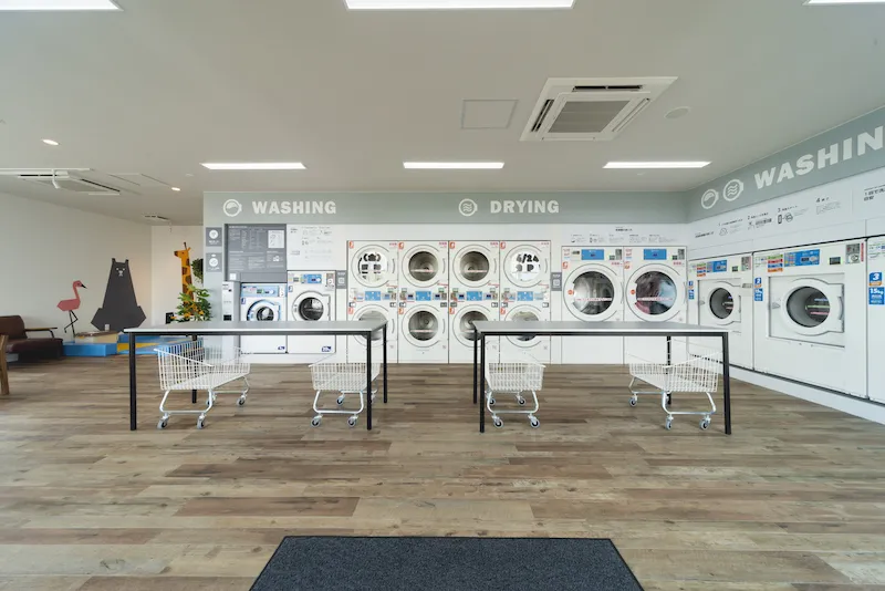 洗濯乾燥機や大型乾燥機も完備しているため、衣類だけでなく布団や大物もきれいに洗える設備が整っています。