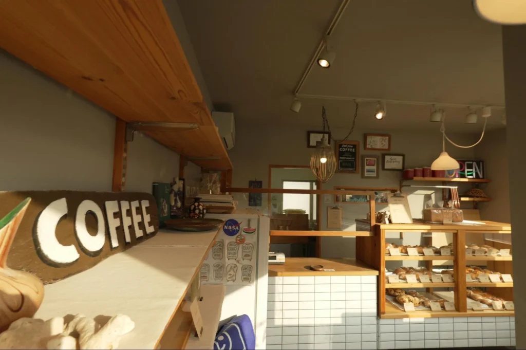店では淹れ立てを味わえるほか、テイクアウトも。また、豆を購入することもできます。レジ上部のボードに、本日のコーヒーが記してあるので、パンと一緒にこだわりの一杯を味わってみてください。