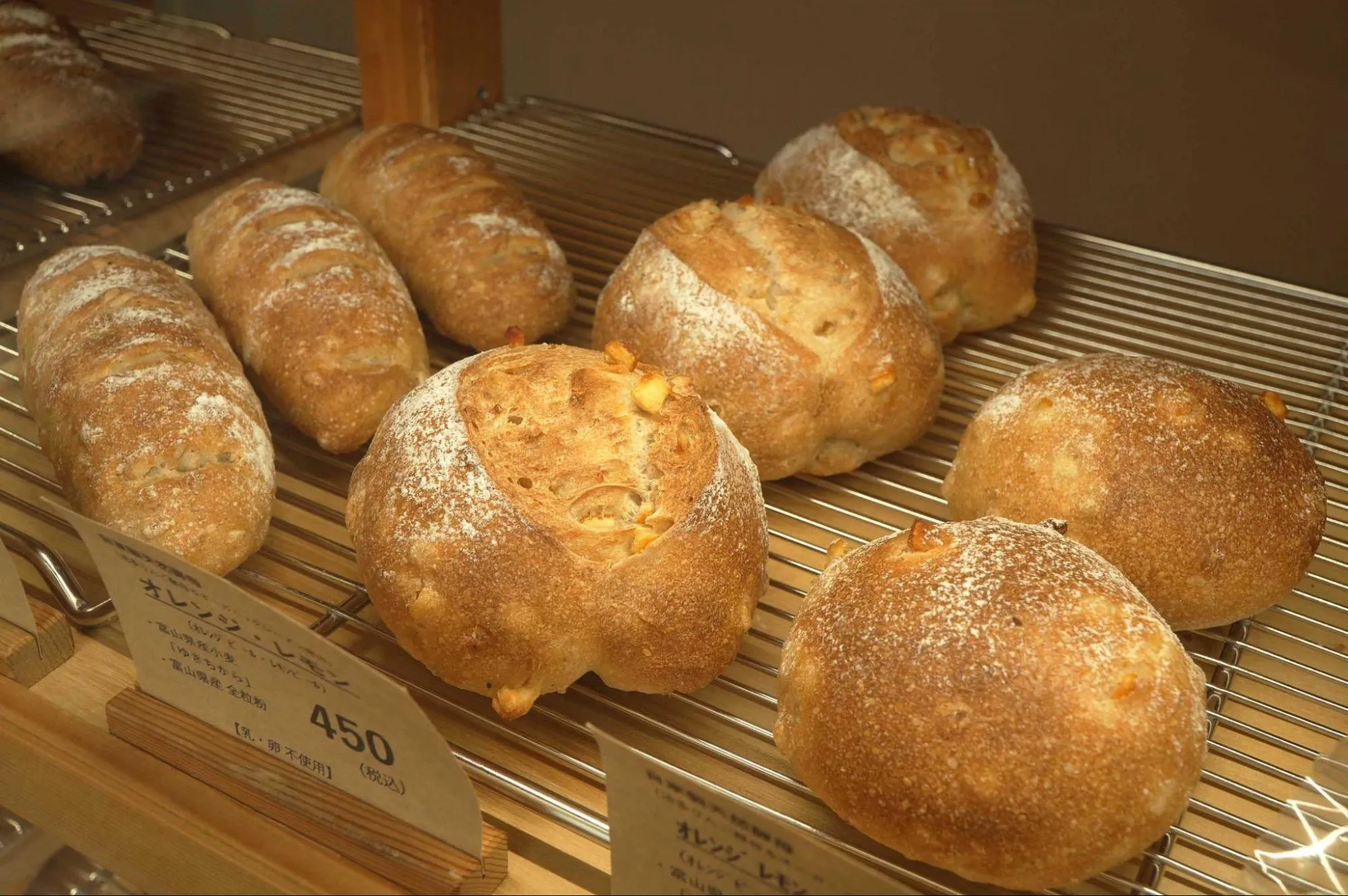 富山県産小麦「ゆきちから」を使った食パンをはじめ、射水市池多地域で栽培している農薬や化学肥料を抑えた「池多りんご」の自家製天然酵母を使ったハード系のパン。