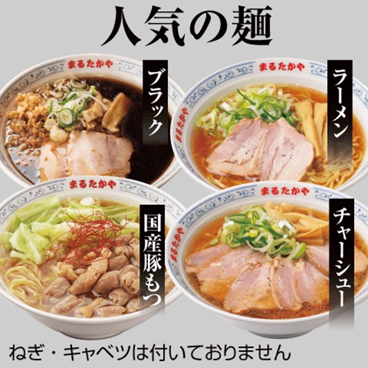 富山のラーメンといえば「まるたかや」!富山県民に愛される、創業70年の「まるたかや」のラーメンのほか、ブラックラーメン等3種類のラーメンを楽しむことができるセットもあります。