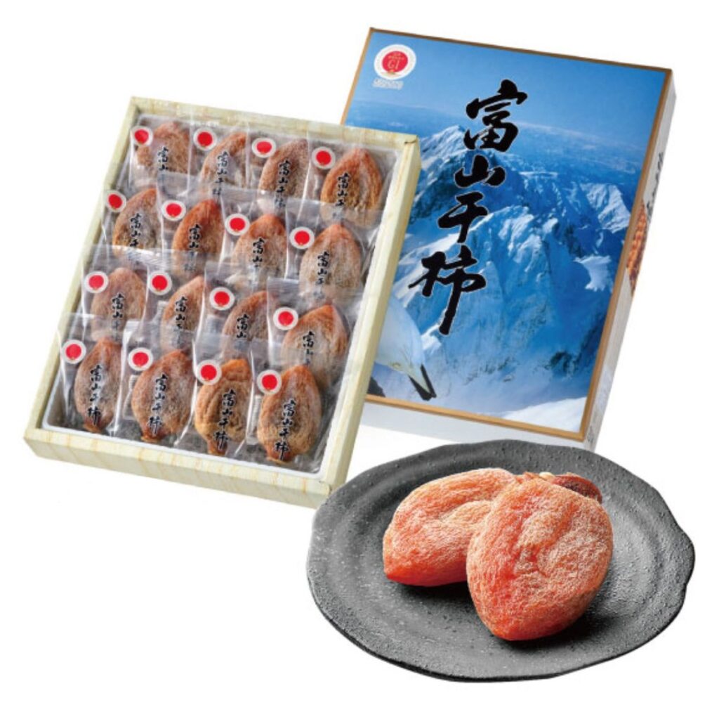 こちらも冬の富山の代表的な味覚「富山干柿」。「富山県推奨とやまブランド」に認定されている特産品で、皇室にも献上されています。