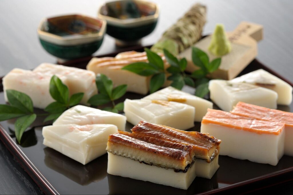 まるでお寿司のようにかまぼこの上に魚がのっており、食卓を上品に、そして華やかにしてくれる一品です。