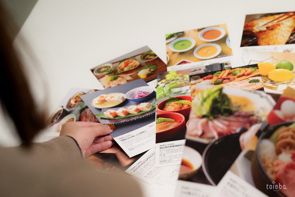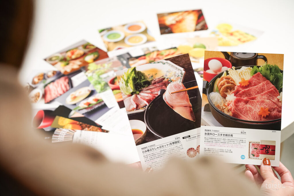 トヤマカードは価格帯別に3種類あり、選べる商品数や種類に違いがあります。様々な特産品を一度に見ることができるので、富山についてもより知ってもらうきっかけになりますね。