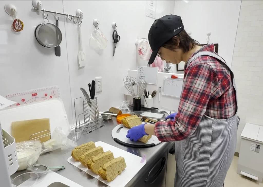 インターネット動画でシフォンケーキの師匠に習い、自分なりの形を作り上げた中田さん。