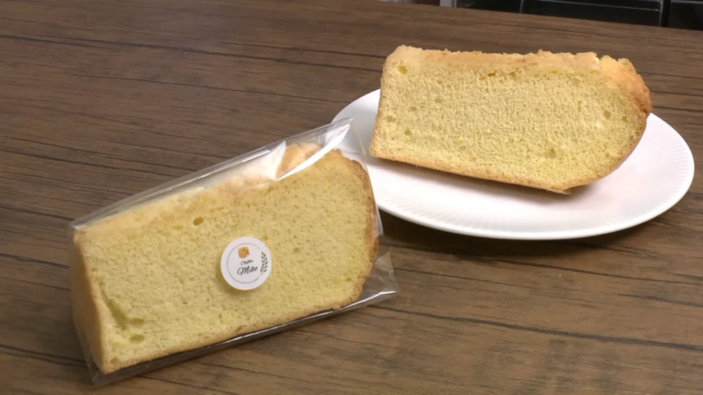 シフォンケーキは米、卵、砂糖、水と材料がシンプルだからこそ奥が深く、わずかな温度変化でふくらまなかったり、苦労も多いそう。型から外す時はいつも緊張するそうです。